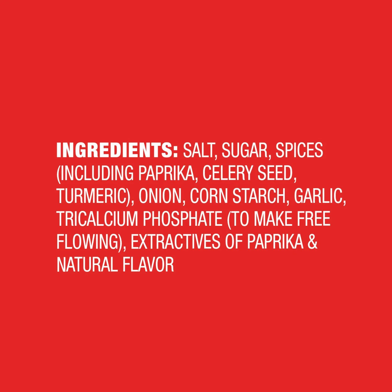 Our Seasoned Salt is a versatile staple that brings a delicious difference to everything that you shake it on. It’s a bold blend that includes paprika and turmeric, plus onion and garlic, and contains no added MSG. This salt is always the answer, whether it’s breakfast, lunch, dinner, or snack time. Shake on beef, pork, or poultry before and after cooking. Mix into ground beef for better burgers. Add to fries and baked or mashed potatoes. Sprinkle on eggs, salads, vegetables, soups, popcorn…the possibilities are endless!