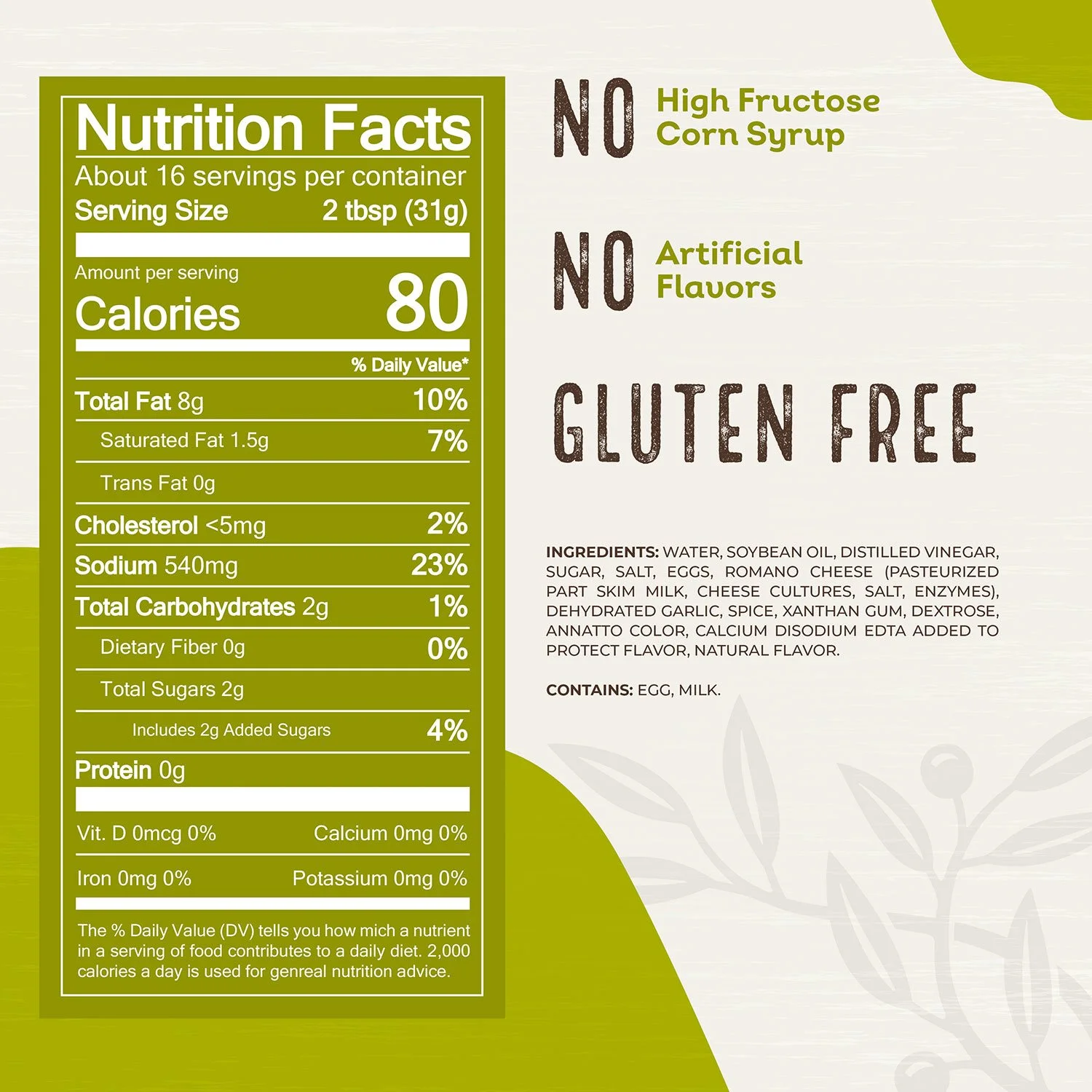 What gives Olive Garden Italian dressing its unique flavor? Each bottle is loaded down with a vinegar base, lemon juice, romano cheese, sugar and a collection of Italian spices like oregano, black pepper, onion powder, parsley, basil, parsley and crushed red peppers. Each ingredient adds another layer of flavor, and the romano cheese specifically imparts a special creaminess to the dressing that helps it coat each item in the salad.
